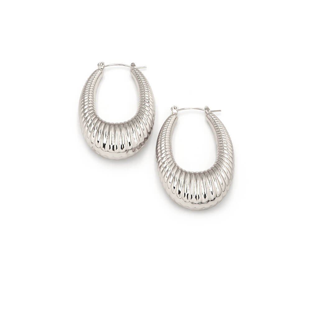 Σκουλαρίκια κρίκοι αυτιών σε ασημί χρώμα. Κλασσικοί κρίκοι σε οβάλ σκαλιστό σχέδιο πάχους 4mm-10mm με γραμμές. Ένα κόσμημα που θα σας εκπλήξει και θα το λατρέψετε. Ύψος:5cm.
