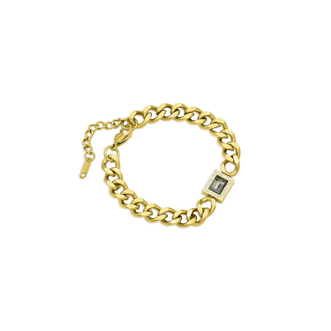 Ατσάλινο βραχιόλι με αλυσίδα πάχους 8mm σε χρυσό χρώμα συγκρατεί πέτρα σε γκρι σκούρο χρώμα στολισμένη όλη με στρας (μήκος 1.2cm). Ένα κομψό κόσμημα ιδανικό για κάθε περίσταση.