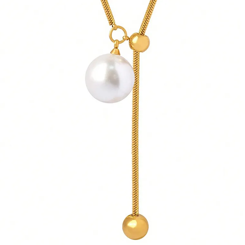 Κολιέ ατσάλινο σε χρυσό χρώμα που στο τελείωμα εχει κρεμαστή πέρλα. Διαστάσεις 77cm.