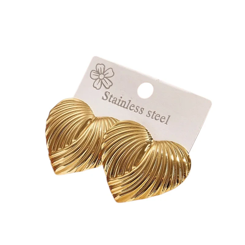 Σκουλαρίκια ατσάλινα σε σχήμα καρδιά σε χρυσό χρώμα.